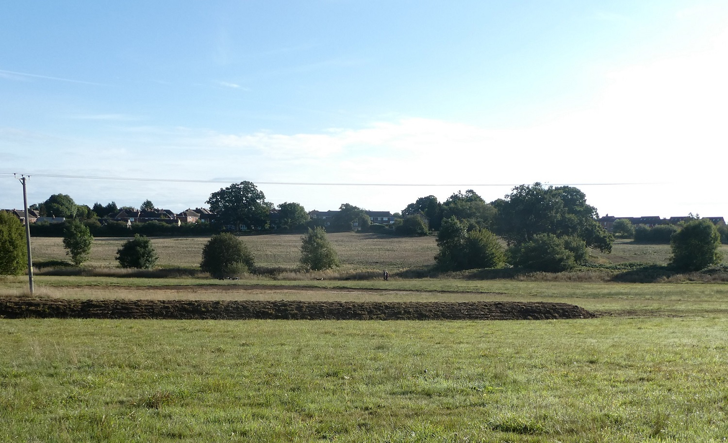 Lambrok Meadow is always cut from end to end, parallel to the main path, and the beetle banks run in the same direction, to minimise the disruption and loss of acreage to our tenant farmer. The boggy patch where the scrape has been dug was too soft for the farmer’s machines in any but the driest of years but the new pool will drain and firm up the surrounding area: a win all round, we hope.