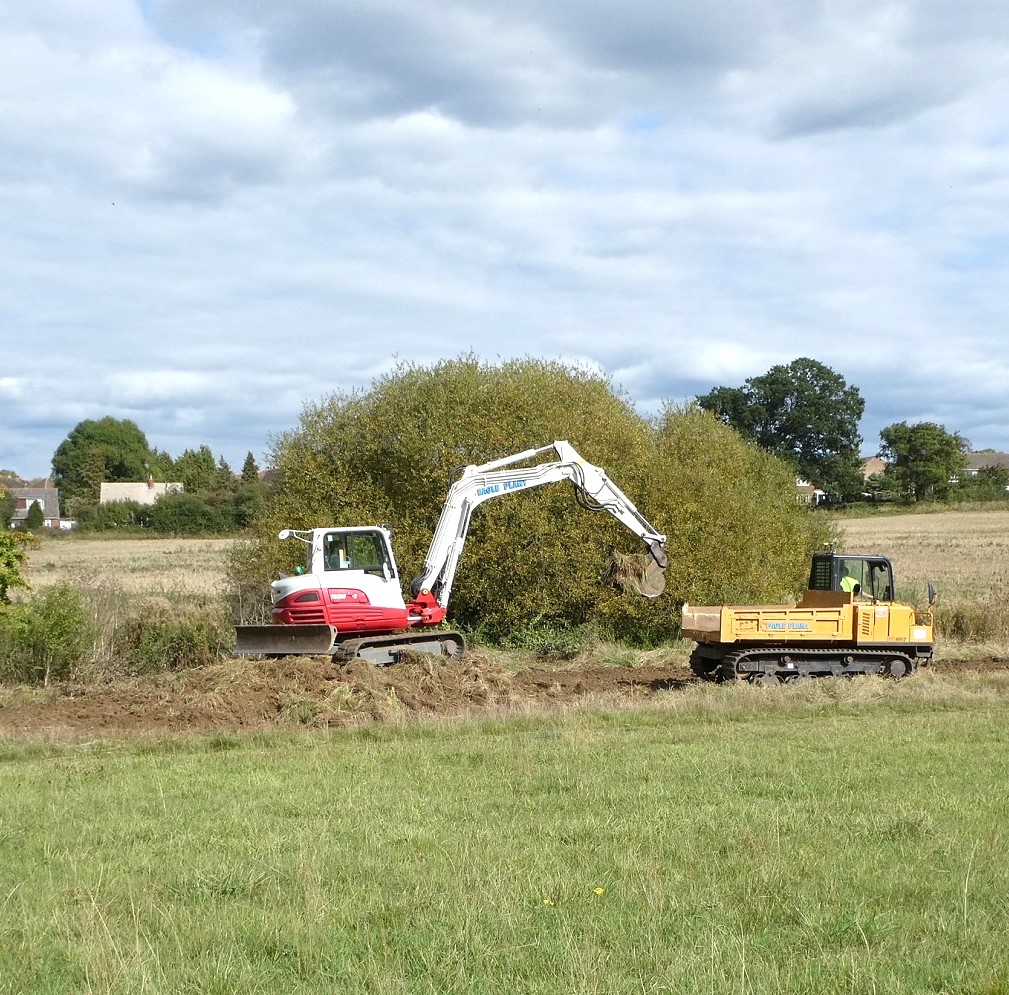 These sites have been carefully chosen with the permission of the Environment Agency, which classes Lambrok Stream as a main river. The Wiltshire Wildlife Trust water team have measured the slopes and levels of the bank to ensure the scrape will operate properly and have designed its connection to the stream to avoid both erosion and excessive silting. They know that upstream, the Lambrok’s water quality is improving, reducing the possibility that pollution or agricultural run-off will accumulate in the silt in the backwaters, damaging wildlife.