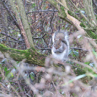 Despite popular belief to the contrary, grey squirrels do not hibernate: they cannot retain enough body fat for hibernation. This may be an adaptation to prevent loss of the speed and agility they rely on to escape from predators. In its native America, the grey squirrel’s main predators are birds of prey; if you are a tree dweller, you need to be really light and athletic to escape a hawk.