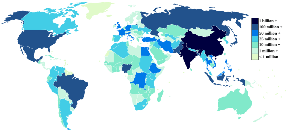 World population by country by Hadrian Oliver (CC BY-SA 3.0) via Wikimedia Commons