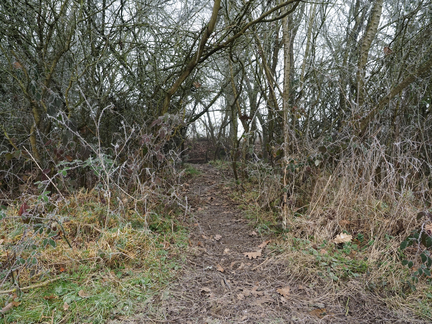 We have been trying to block the gaps in the hedge but we are very aware that our dead wood barriers will not stop an out-of-control dog that considers sheep to be either a game of chase, or prey. The paths through the hedge are well used; many dog walkers seem to have been happy to let their dogs stray from the reserve through this hedge and into the farmland beyond. There are often sheep in these fields.