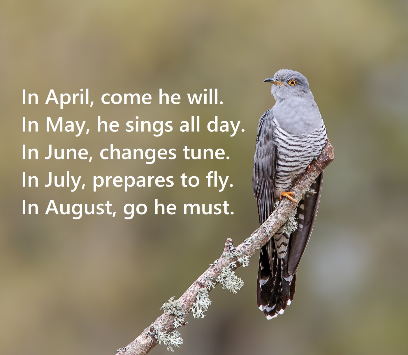 April, come he will… Has any body heard a cuckoo yet? The rhyme is a traditional nursery rhyme Share on your social media: Click to share on Facebook (Opens in new window) Facebook Click to share on X (Opens in new window) X Like Loading... 2 thoughts on “” Yeah, me. Lol! Kidding aside. I’ve not seen it before. I’d like to someday 😊 Beautiful, yes I have too Comments are closed.