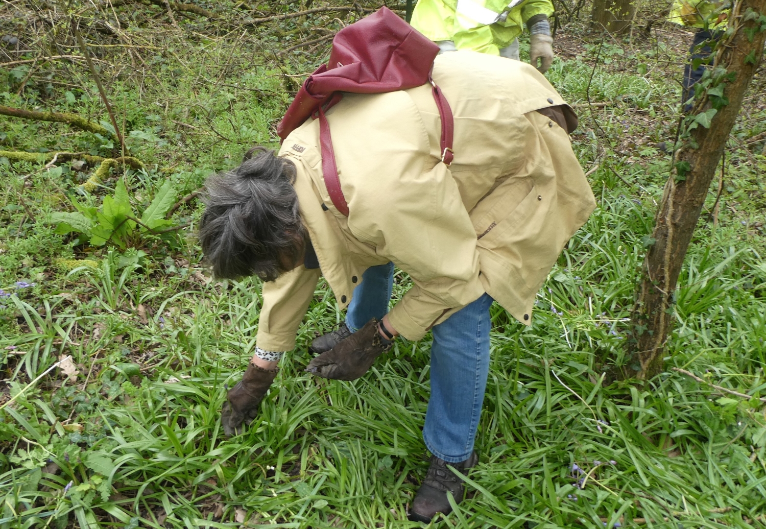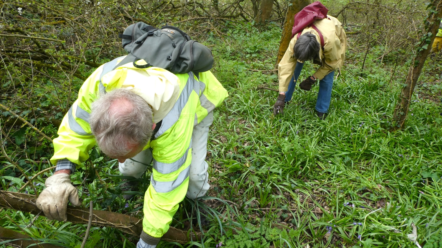 Every year, as the reserve’s bluebells come into flower, the Friends do battle against a dreaded invasive alien: Spanish squill. This week Sarah, Alan, Jim and Ian set to in the copse next to the Heritage Orchard, where the squill are threatening our native bluebells.