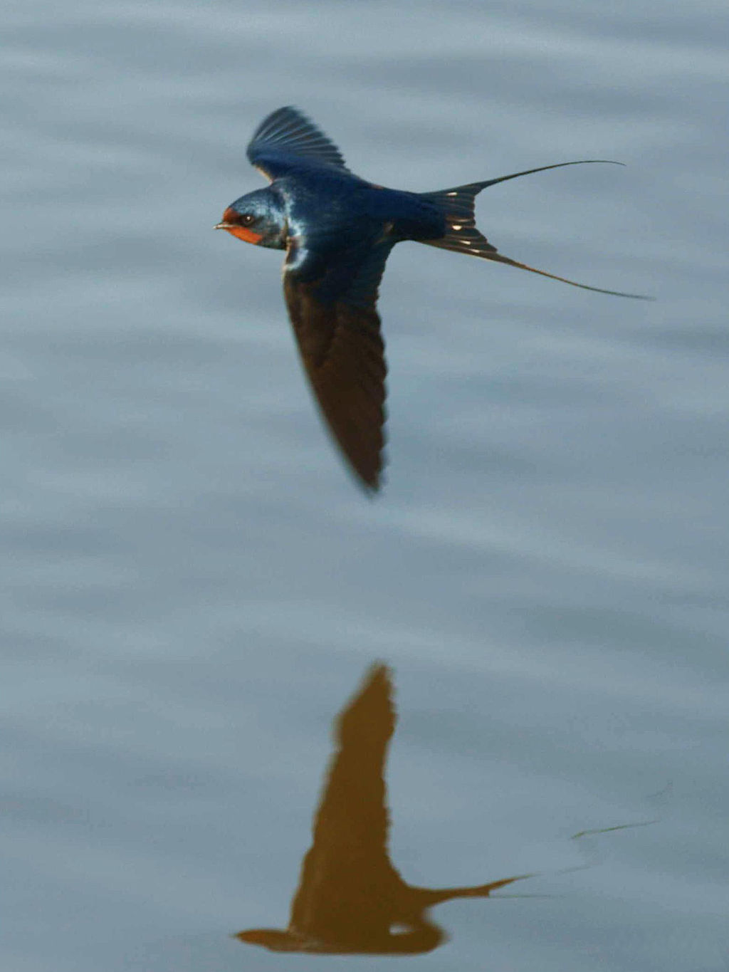 Habitat in the reserve: Swallows are common summer visitors, arriving in April and leaving in October. They build mud and straw nests on ledges, often in farm buildings and outhouses, or under the eaves of houses; we do not have appropriate nest sites in the reserve but swallows visit us from nearby nests to hunt insects.