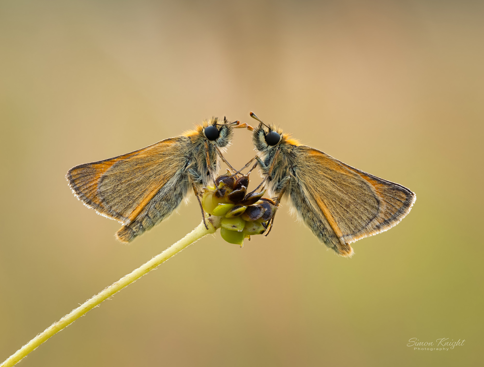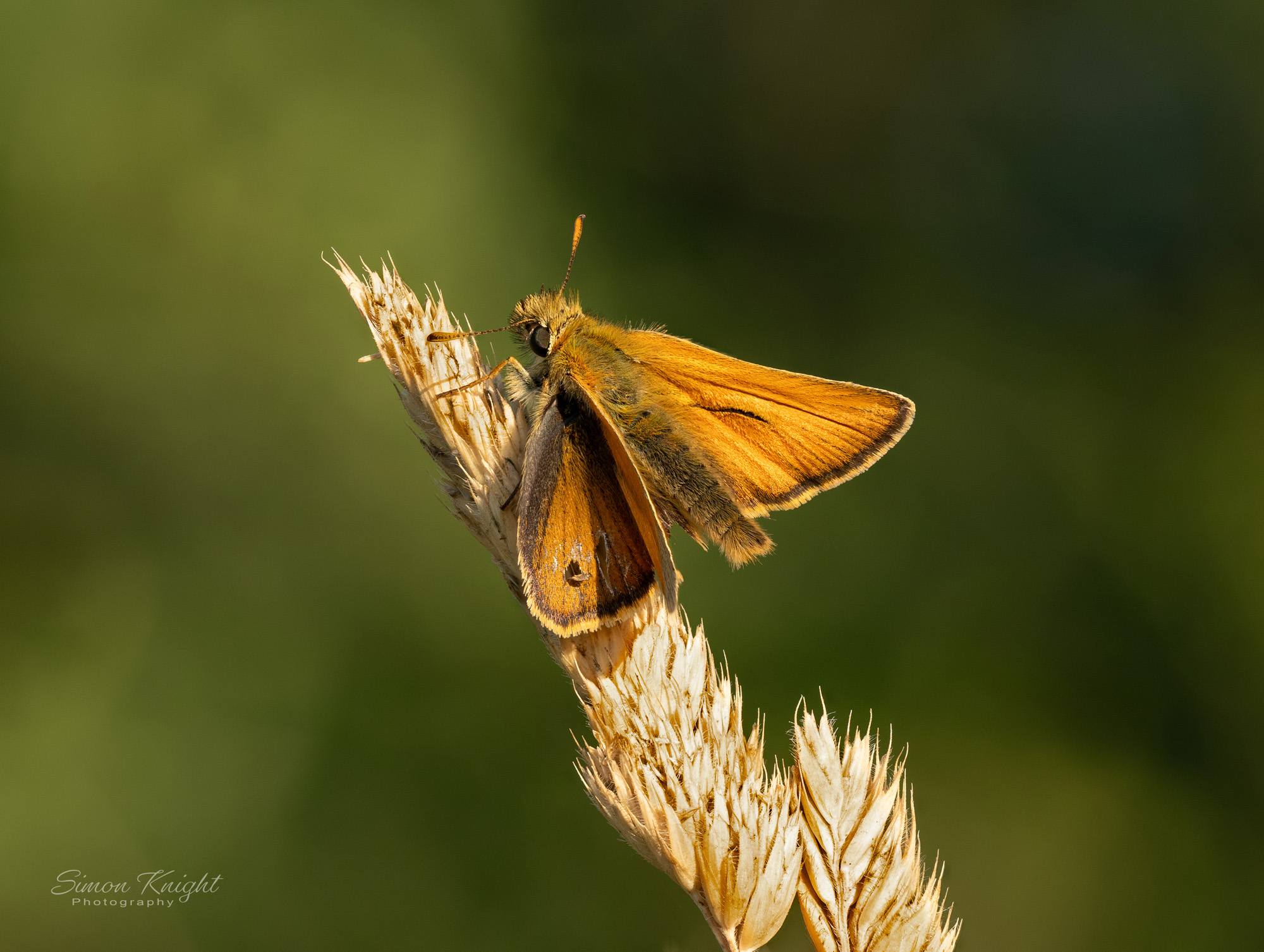 I almost abandoned one early morning session last week after my weather app clearly lied to me. It had promised some sunshine for the first couple of hours after sunrise, but instead, the morning brought with it dull, overcast conditions. But I was glad that I ignored the voice in my head telling me to go back to bed, as the two hours I spent in the reserve were thoroughly worth it. My first special invertebrate encounter came in Kestrel Field when I found some small skippers that hadn’t risen from their nights roost. Fortunately they were high up on some buttercups that were in the process of going to seed, which meant that I would be able to get pictures with clean backgrounds.