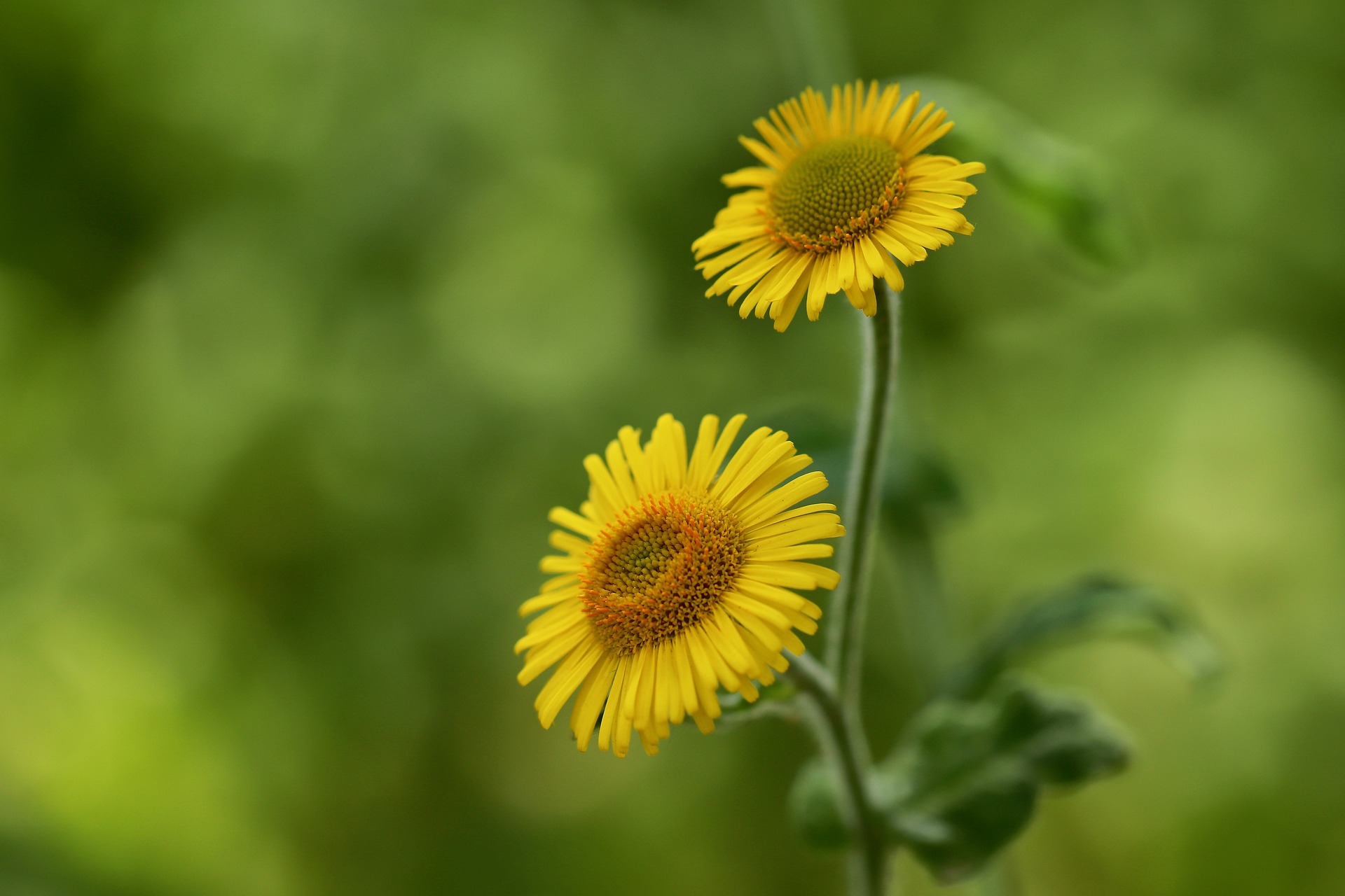 The species name, dysenterica, comes from its past use in herbal medicine as a treatment for diarrhoea. Often a botanical name contains the history of a plant’s usefulness to humankind. Fleabane is still used today as a herbal remedy for digestive problems as well as to ease coughs and bronchial infections.