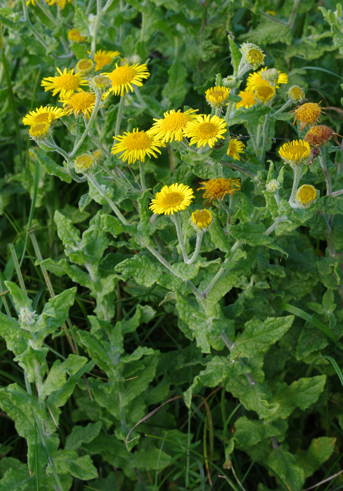 Pulix dysenterica is native to Europe, common and widely distributed. Its range stretches from the Mediterranean in the south and reaches its northern limit in eastern Demark. It is sufficiently common in southern Britain to be regarded as a weed, rarer in the north and absent from Scotland but it is probable that climate change will extend its range northwards.