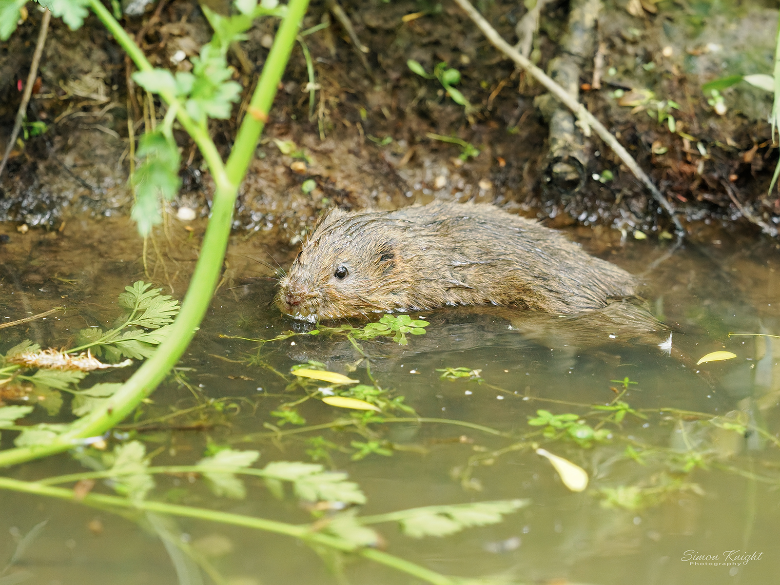 The stream that flows under the Village Green Bridge is a tributary to the Lambrok. It flows through the farmland between the reserve and Hoggington Lane. Its water quality seems to be good and it seethes with wildlife, including water voles, native aquatic mammals afforded the highest level of protection available in the UK, and water shrews. Water shrews are so rarely seen (or photographed) that very little information about them is available. The Mammal Society says that so little is known about them it is difficult to tell if their populations are under threat.
