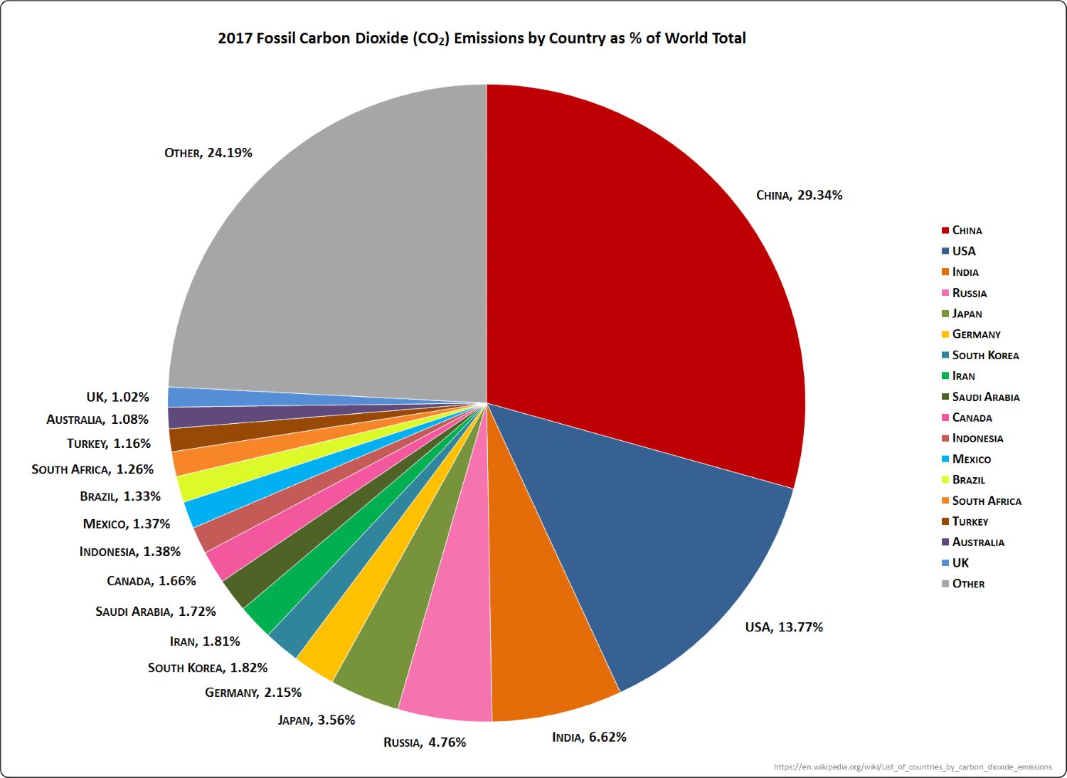 CO2 emissions by country and COP21 celebrates the Paris Agreement in 2015