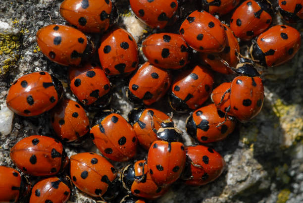 During the winter months, the adult seven spot enters a dormant state called diapause. It relies on the reserves it accumulated during the summer and, just like a hedgehog or a dormouse, its weight correlates with its chances of survival.