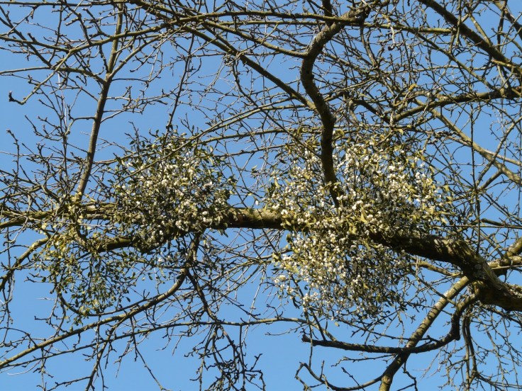 There is only one species of mistletoe native to Britain, Viscum album, but there is none growing in the reserve. We would love to see it established here but we are not sure how we would go about it.