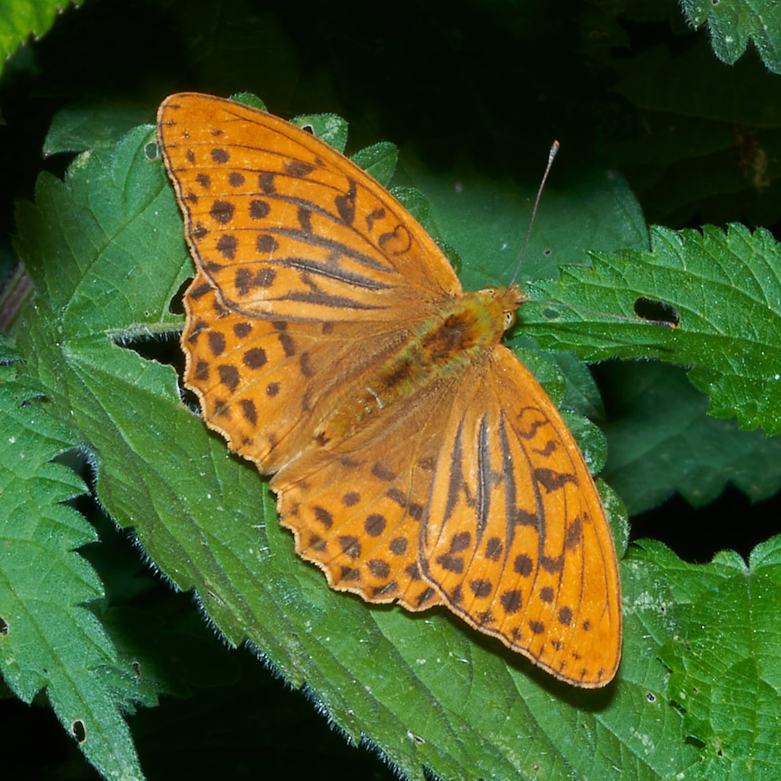 We added three new species of Lepidoptera, all rare finds, all reported by visitors to the reserve: a death’s head hawkmoth caterpillar, a silver washed fritillary butterfly and a five spot burnet moth.