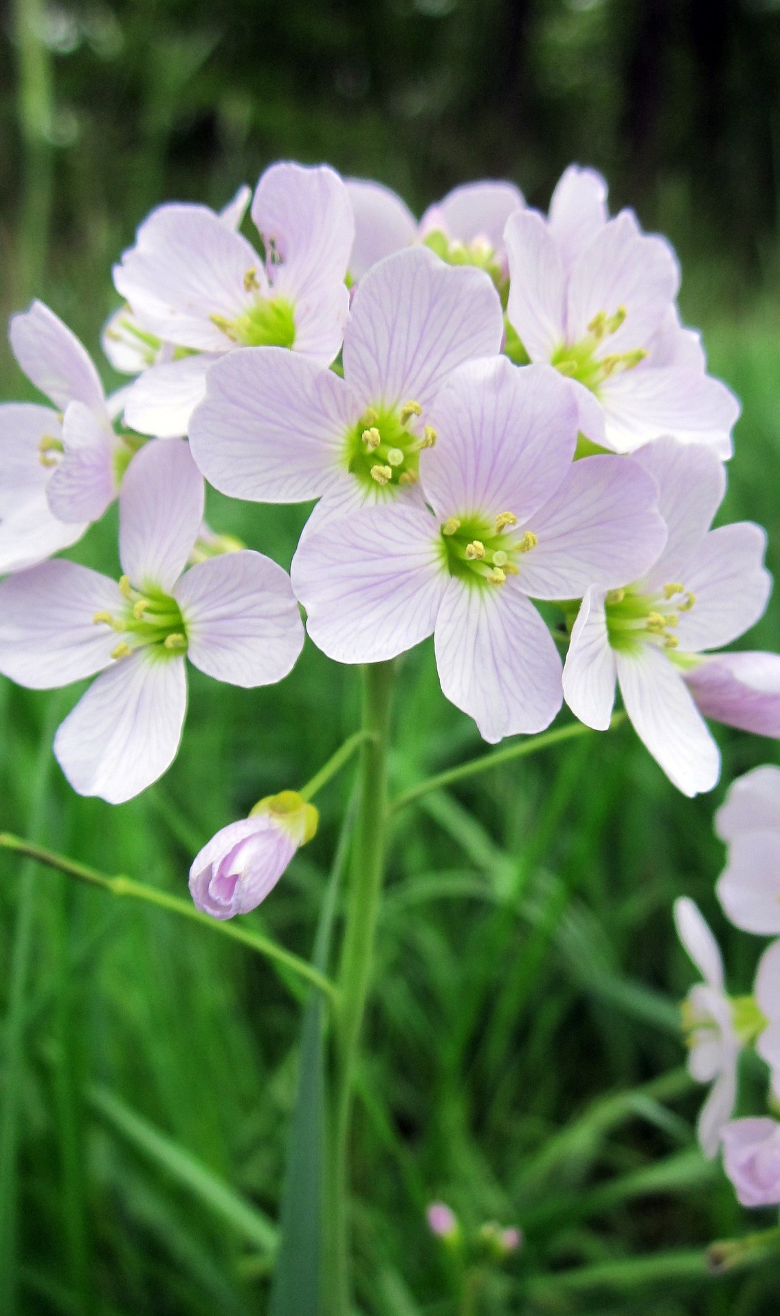 Milkmaids belongs to the brassica family and is an unlikely close cousin to the Brussel sprouts you probably ate with your turkey, on Christmas Day. All brassicas, even Brussel sprouts, are easily identified by their flowers which have only four petals, arranged as a cross, with six yellow stamens at its centre. Like most brassicas, Cardamine pratensis is edible, the leaves and flowers adding a peppery edge to an early summer salad.