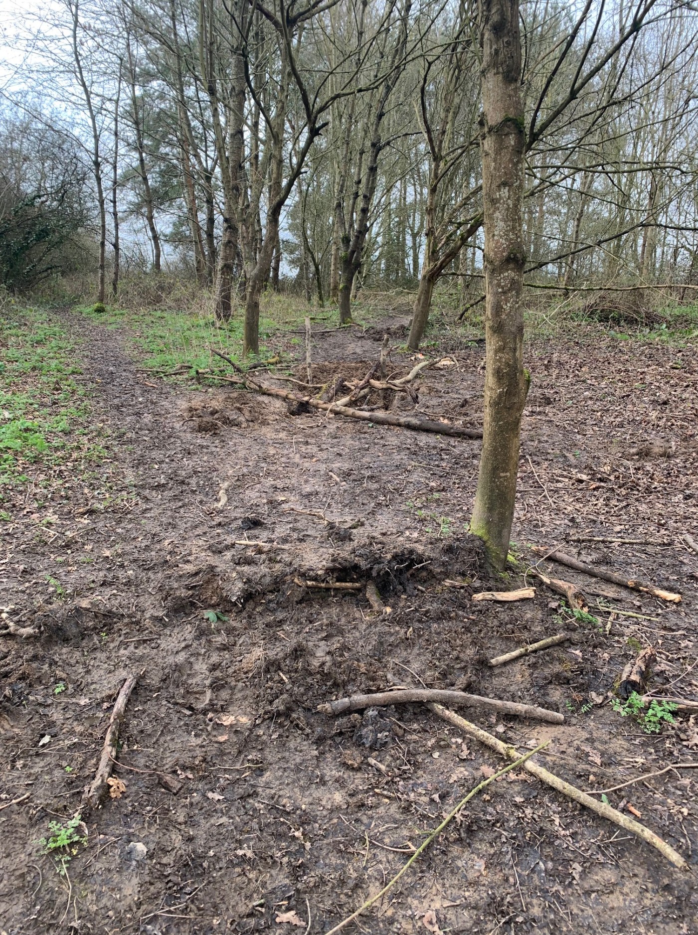 This was investigated by one of the Friends and they identified that a track had been made through the copse. He was not sure if motor bikes or BMX bikes had been using it but they had worn substantial grooves in the ground. This area is very close to where we have Bluebells, Wood Anemones and Broad-leaved Helleborines growing during the year so we may have to block this path to protect the area and create another: this is how one job runs into another.