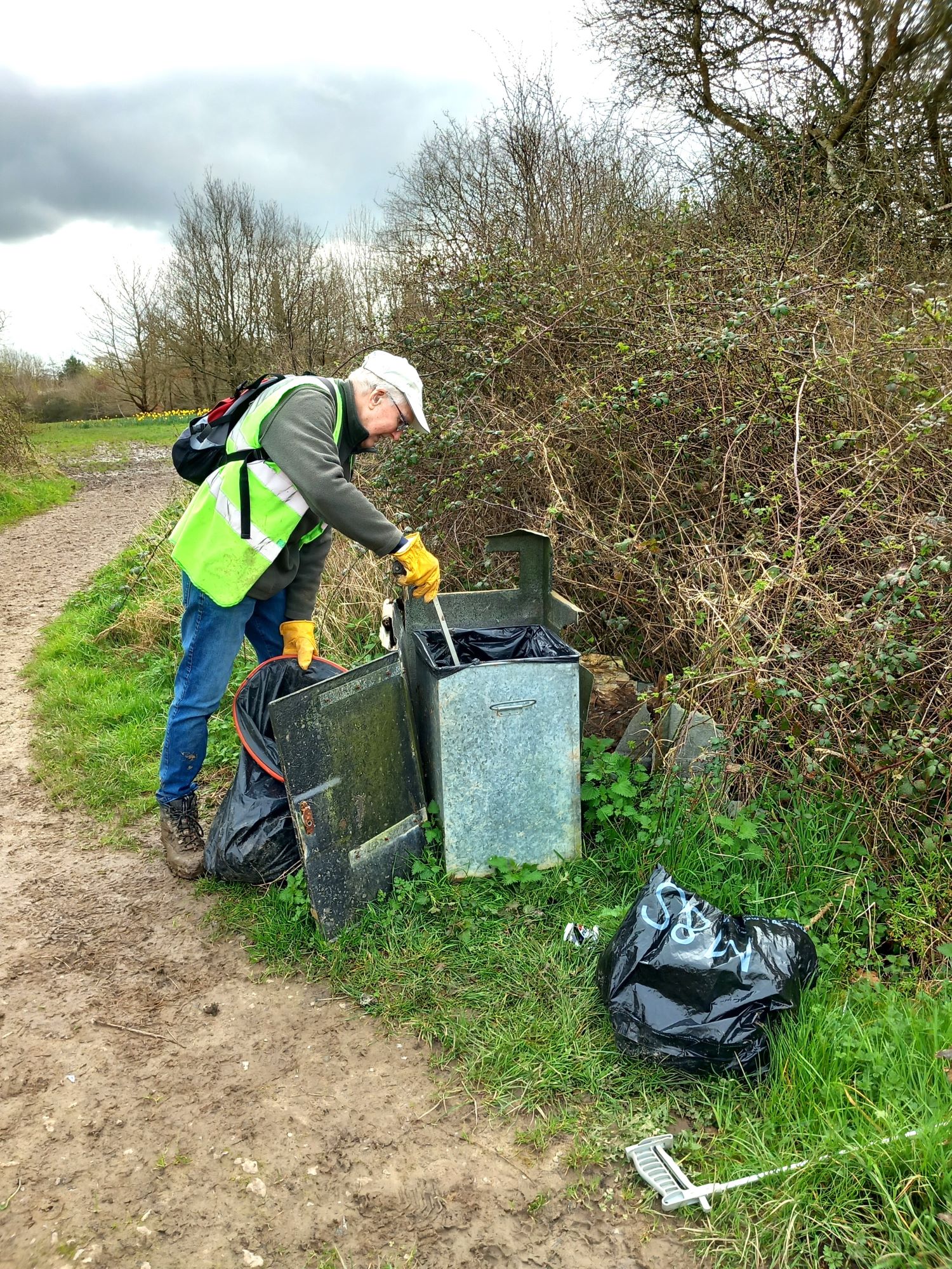 Meanwhile Sarah and Frank took on litter picking duties. Generally the car park and reserve as a whole were delightfully litter free – so they took on the odious and smelly task of emptying the decrepit litter bin at the top of Kestrel field that does not appear to have been emptied by the contractors for some months.