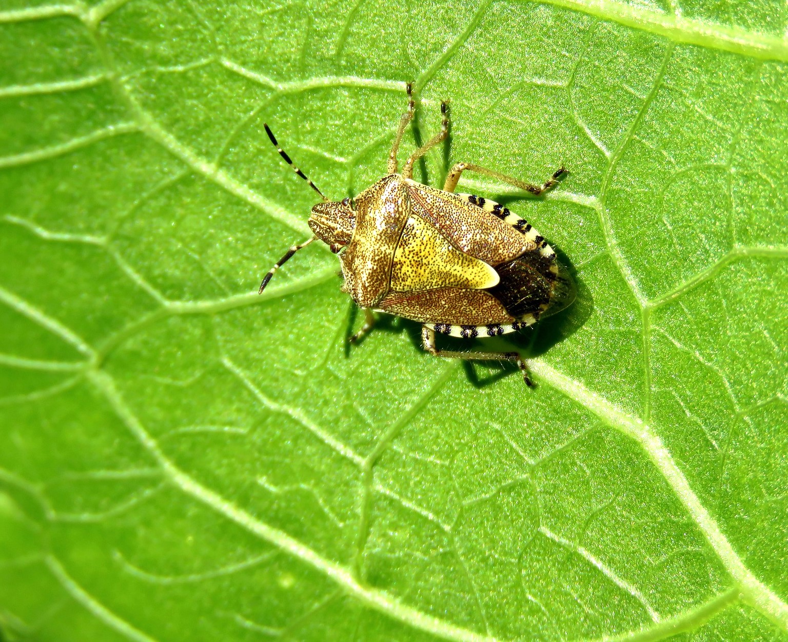 The cabbage shieldbug, as its name suggests, feeds on Brassicaceae and other cruciferous plants but it would take a sizeable infestation to do any significant damage to your cabbages. The hairy shieldbug has more varied and less cultivated tastes and can be found feeding on the leaves and fruit of all kinds of hedgerow and woodland edge vegetation.