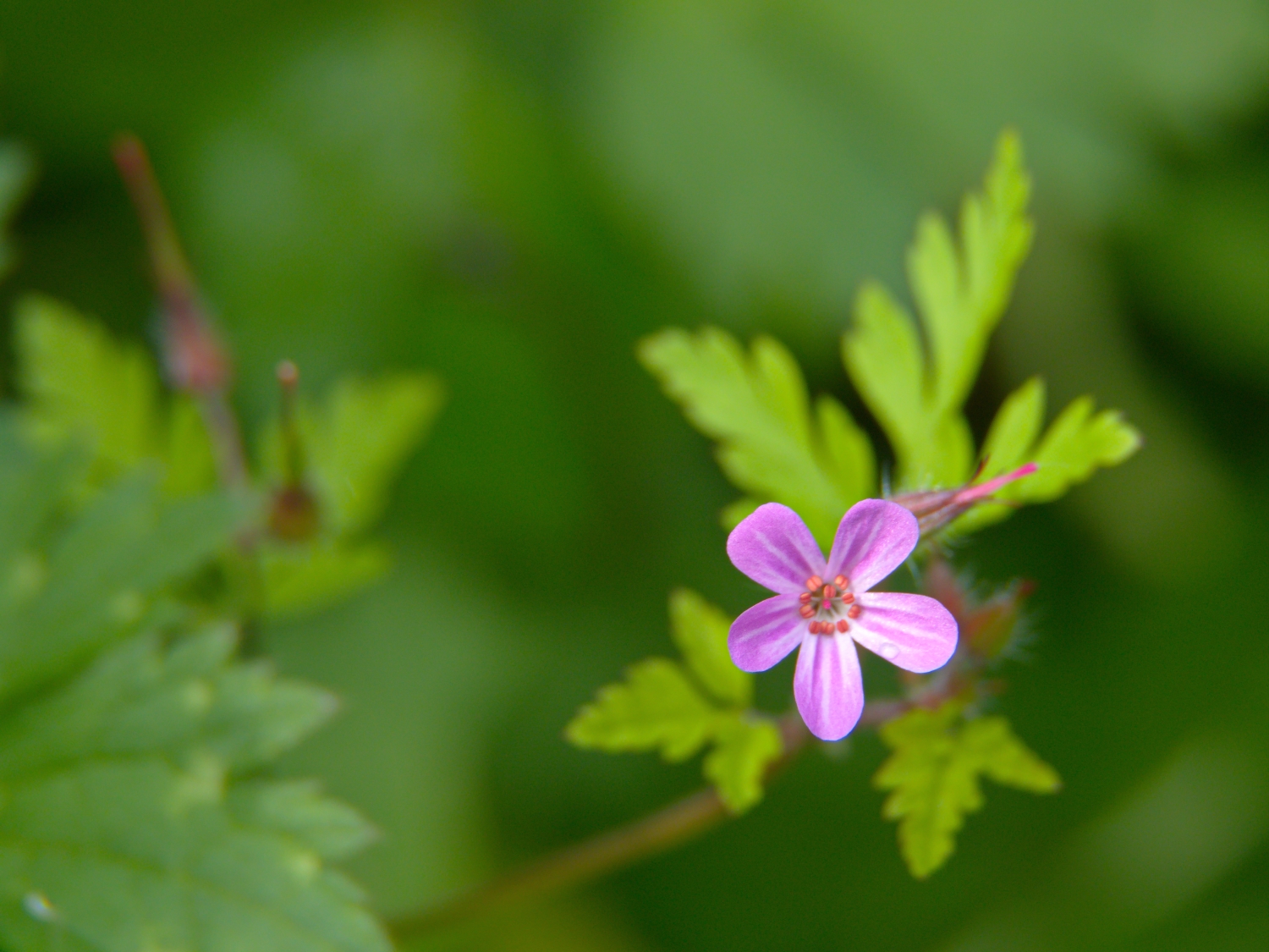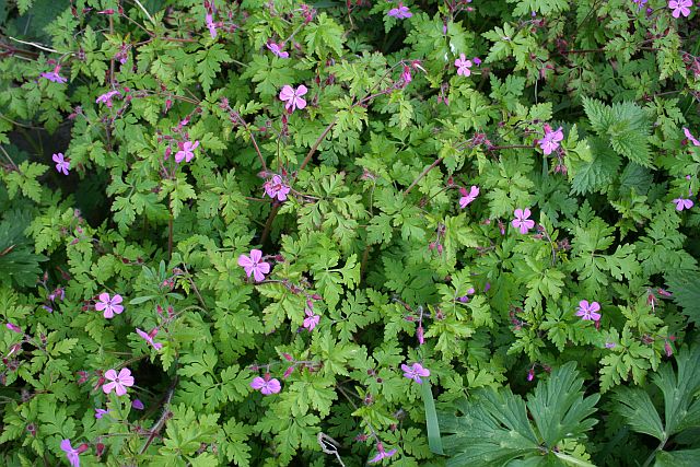 Herb-robert (Geranium robertianum) is one of our most common wildflowers, growing anywhere it can find a damp footing and a little shade. Nobody seems to know who Robert was, though – but there are theories.