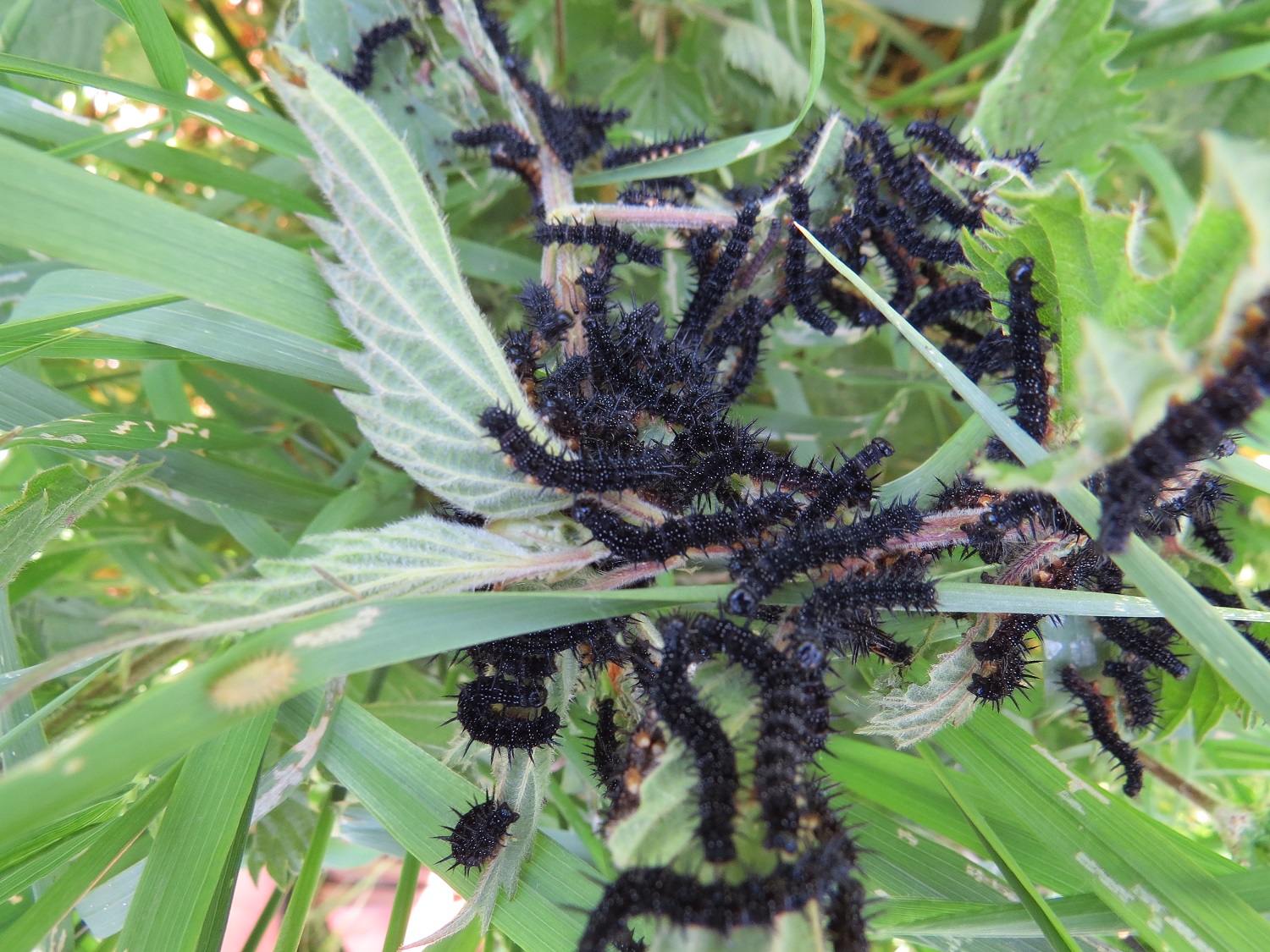 Likewise the red admiral (Vanessa atalanta): the first adults that arrived here in March from continental Europe, laid their eggs on young nettles. The caterpillars are already beginning to hatch and will feast on the nettles until they pupate in July.