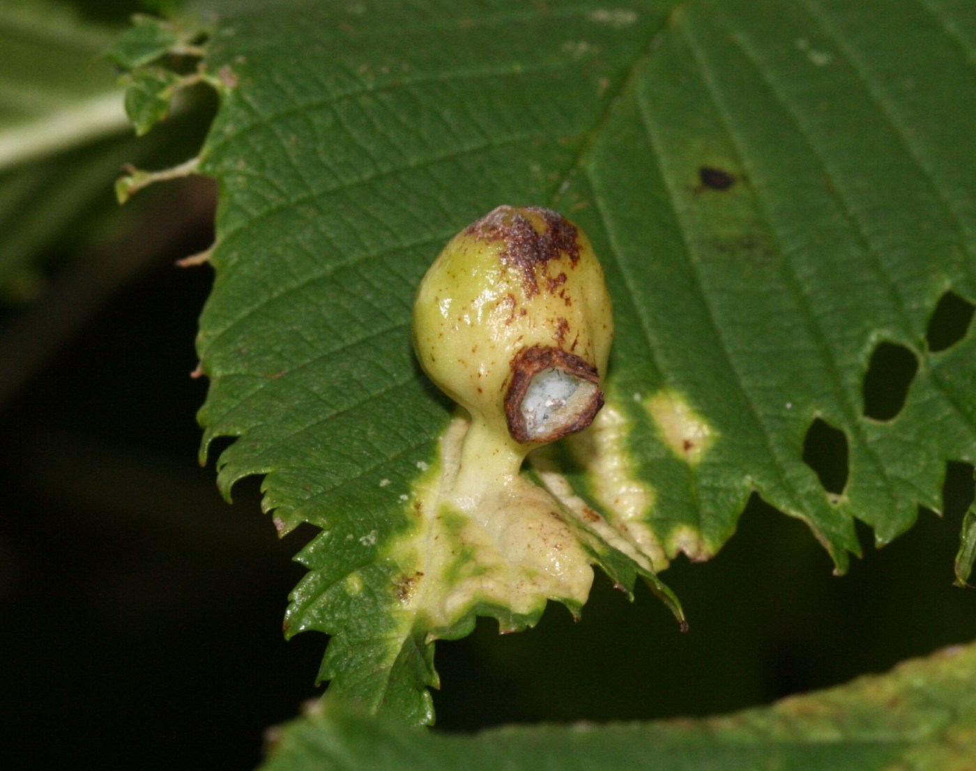 It begins quite simply with a mated female aphid, laying a single egg on an elm leaf. A pouched gall on a stem forms around the egg, and inside the gall, the egg hatches into a pregnant female called a fundatrix. The fundatrix matures inside the growing gall for about three weeks and then gives birth to thirty or forty already-pregnant nymphs: clones of herself.