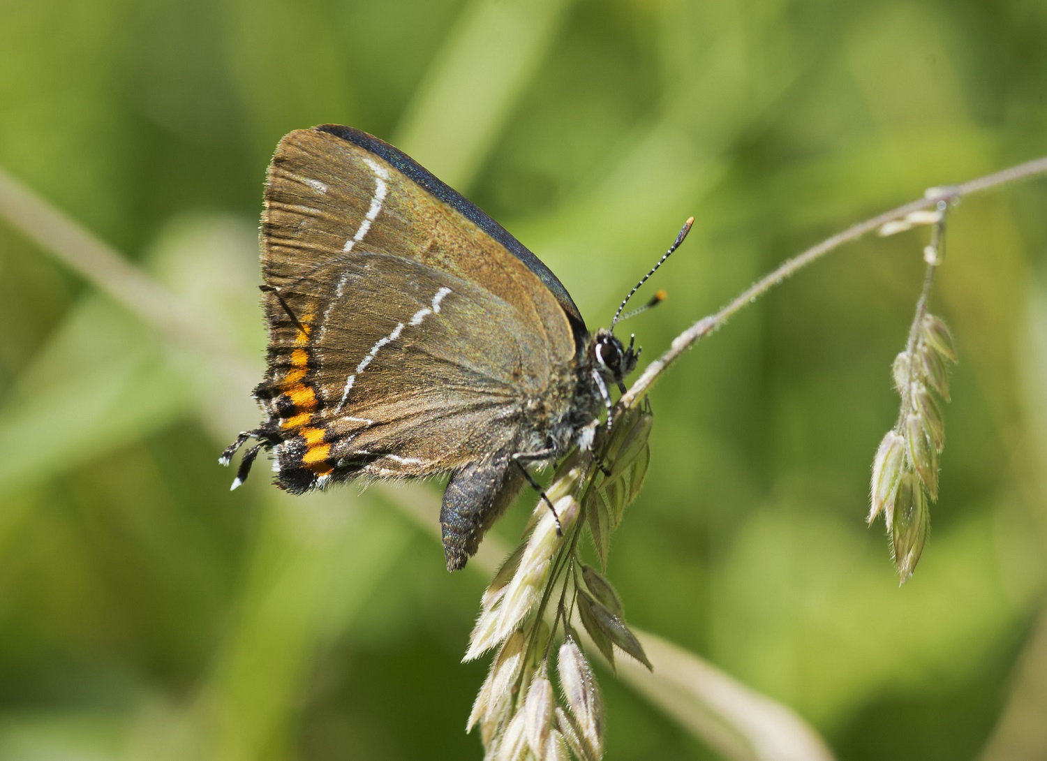 THREE: our rare and rarely seen white letter hairstreak butterfly feeds almost exclusively on honeydew in the tops of the elm trees in the hedge between Sleepers and Cornfield.