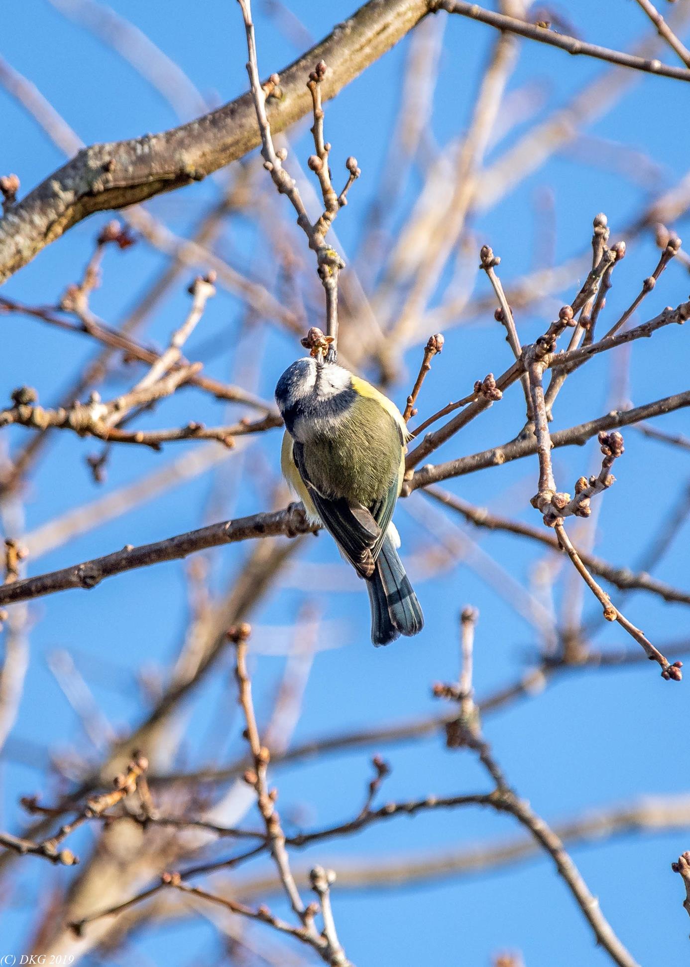 Yesterday, with the help of my binoculars, I watched a coal tit, a blue tit and a long tailed tit feeding together from a fat ball container hanging in from a tree in the garden. Barbara Johnson.