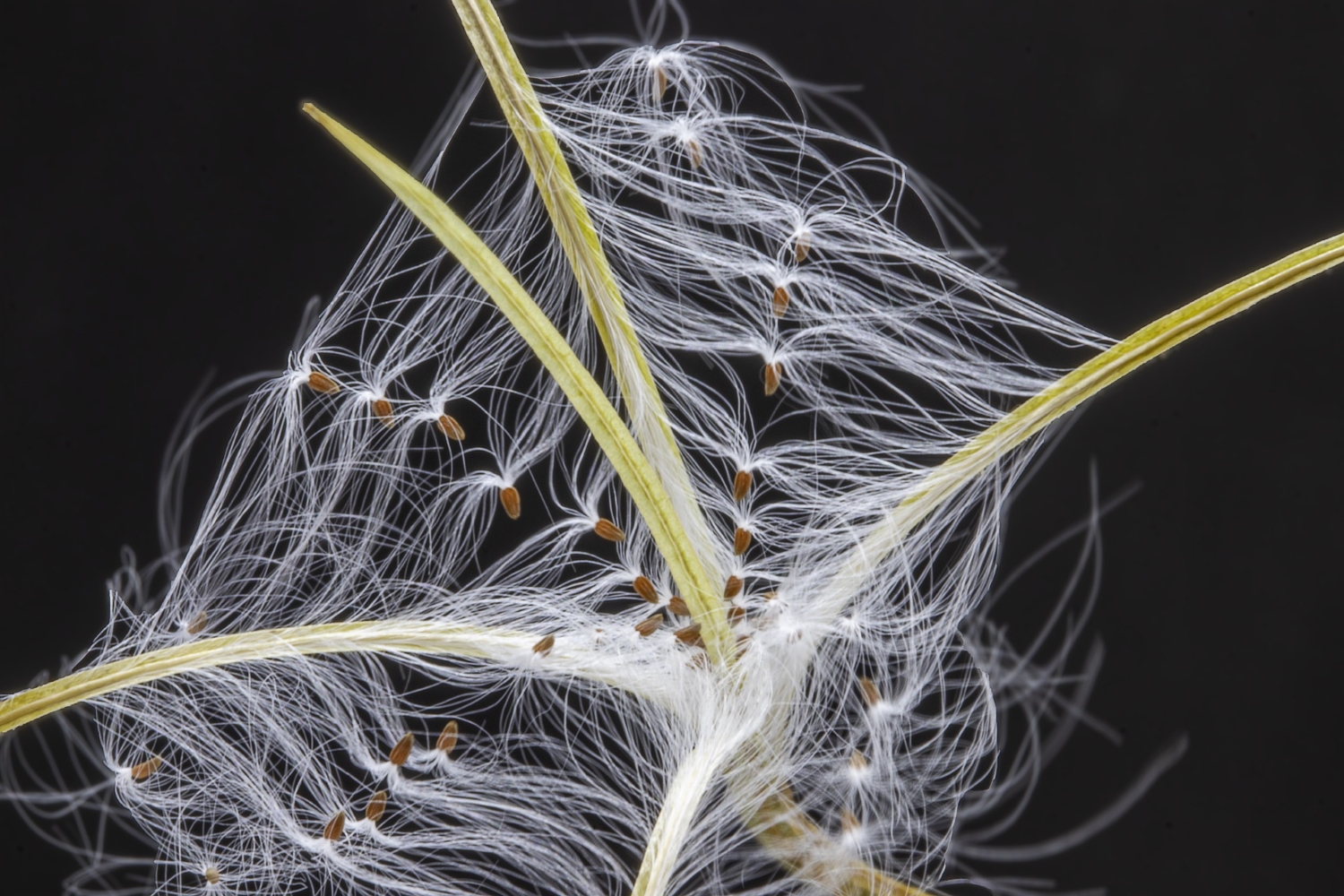 The pods dry when the seeds are fully formed and they open gradually, peeling back to expose the seeds to the wind. Not all the seeds blow away and the basket-like structure that the open seed pods form is a convenient landing place for foraging seed eaters.
