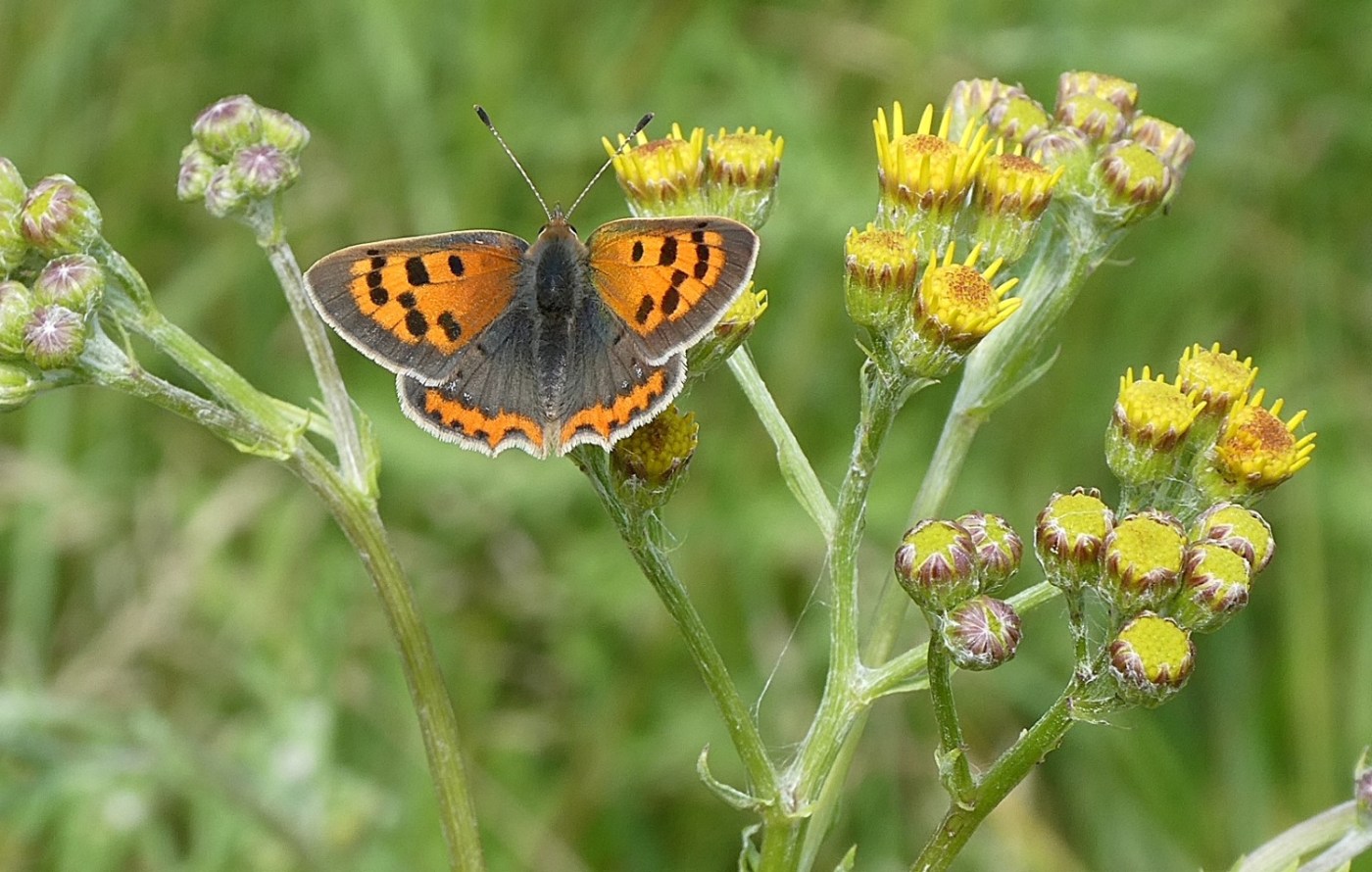 Small coppers (Lycaena phlaeas) are one of the reserve’s late summer regulars. They favour ragwort and creeping thistles, of which we have plenty: keep an eye open for this bright and colourful butterfly.
