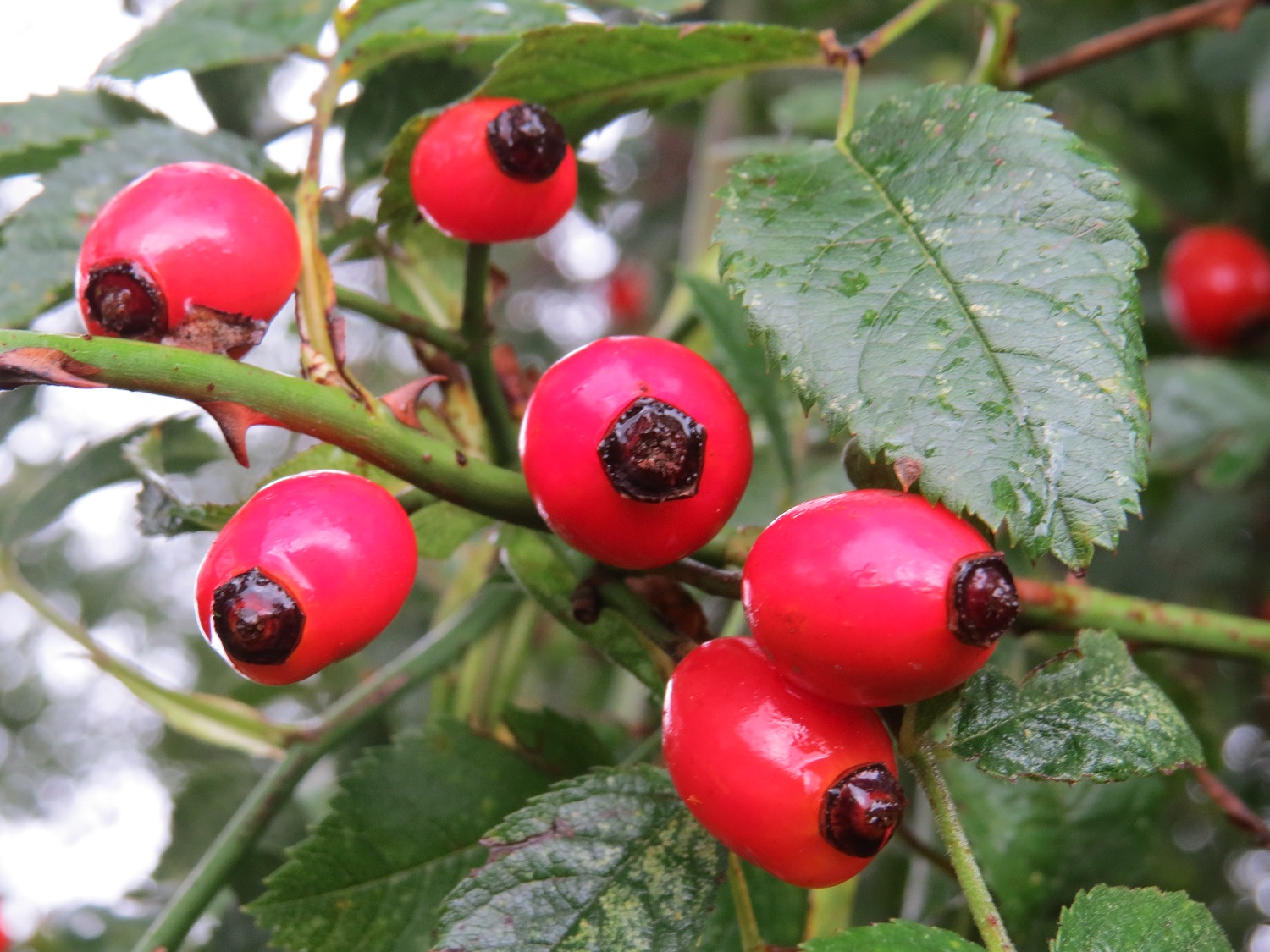 Rosehips are the fruits of the dog roses that grow in our hedges and edges and in the old filled-in pond at the end of Lambrok Meadow.