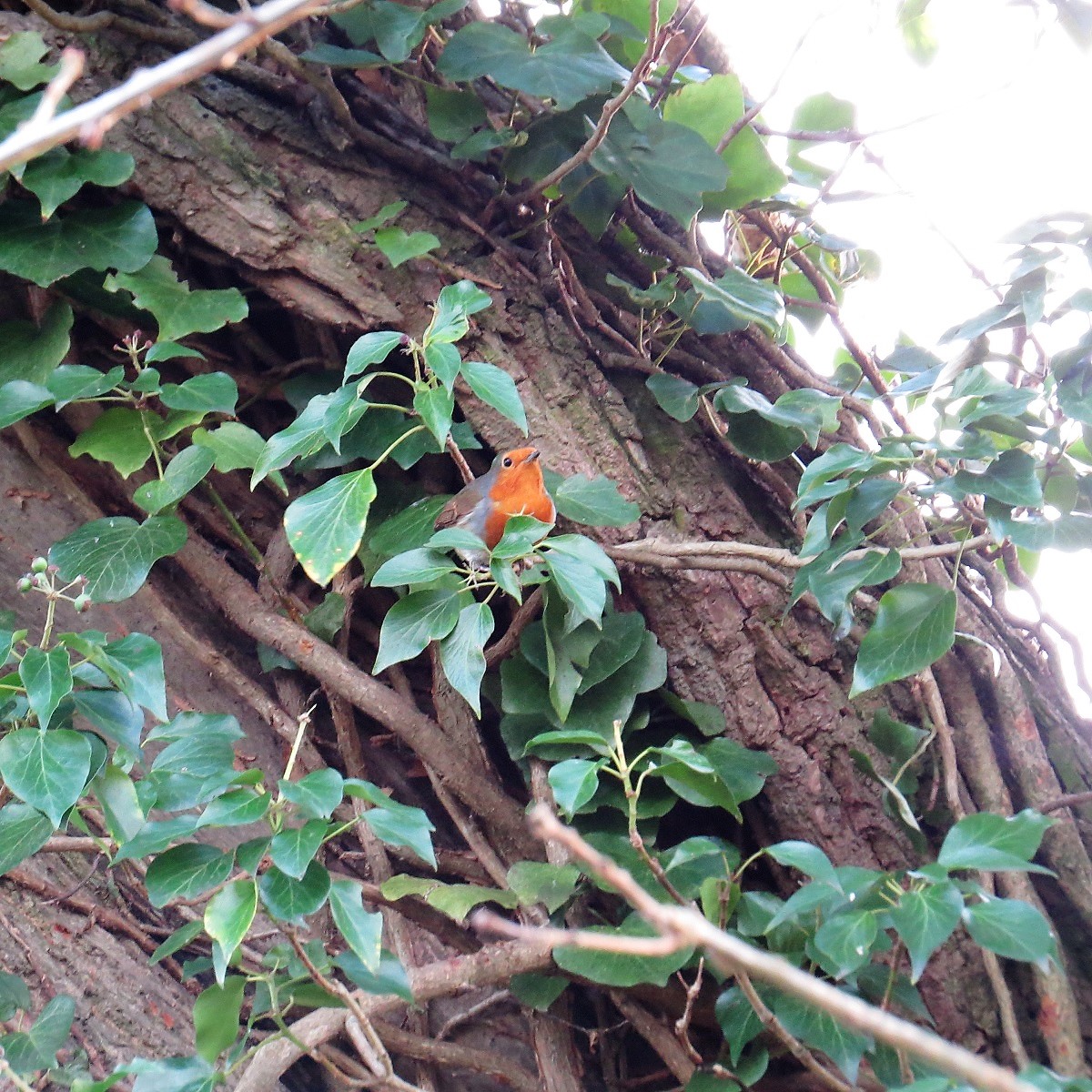 So, in our woodland, the ivy leaves growing on a tree’s trunk will be the lobed immature form trying to climb up to the light, and the mature form with its bright green, smooth-edged leaves, its flowers and berries, is up in the top of the tree.