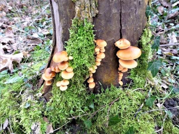 Sulphur tuft (Hypholoma fasciculare) growing on dead wood in the copse between Sleepers and Sheep Field.