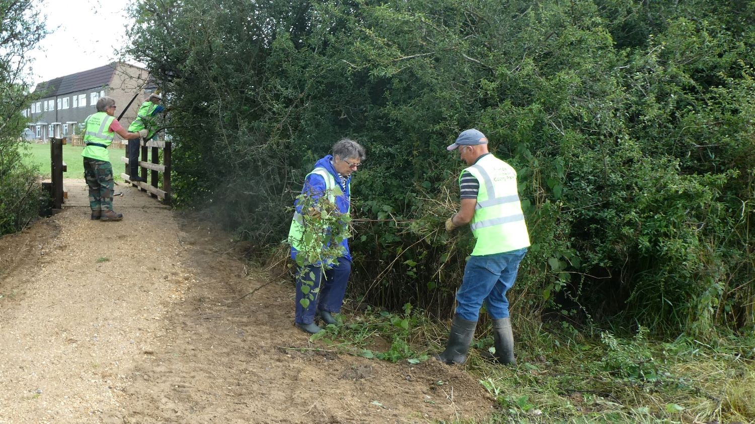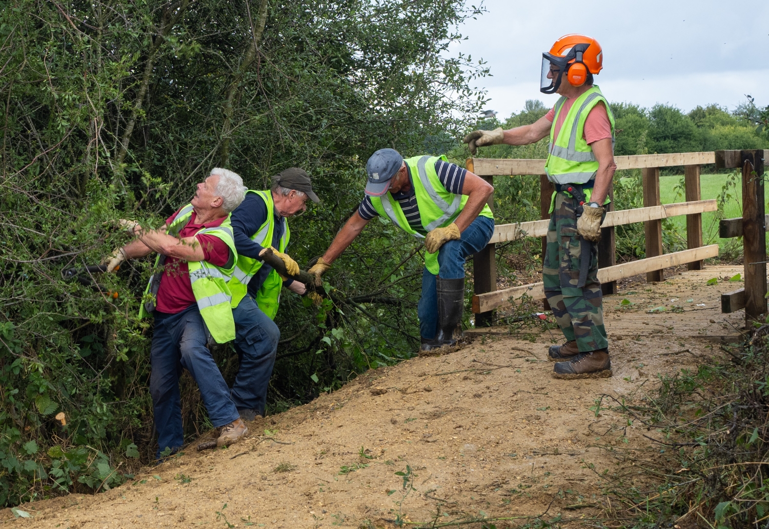 Phil, Frank, Peter White and I have started to clear the grass that has overgrown the edges of the path that cuts out the flooded bit by Puddle Corner. We were surprised to see how far the grass has encroached onto the path. We estimated that clearing both sides has opened up the path by around 80-90cm. We havenโt reached half way but hope to finish next week.