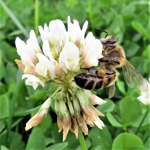 Honey bee on white clover