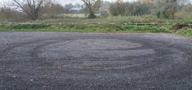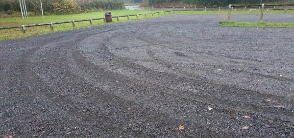 Continue reading “Please: no motorbikes”These are photographs taken last weekend, early on Sunday morning. Whoever it is who is churning up our car park does it on Saturday night; if you know him or her please ask them to stop. Please tell them that our poor car park’s surface is not tarmac, it is rolled planings, and will not last long under such treatment.