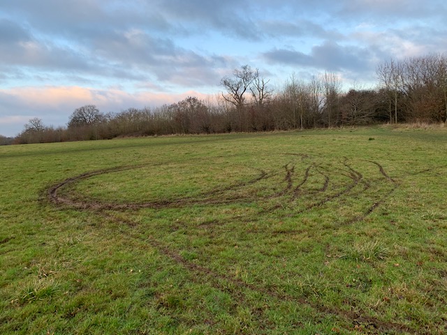 There have been reports of motorbikes being ridden in the park’s fields. The tyre tracks are mostly in Corn Field, Kestrel Field and Lambrok Meadow and seem to show that the bikes enter and leave by the bridge into Lambrok Close. The only motorised vehicles allowed in the park are those maintenance vehicles authorised by Wiltshire Council, and mobility vehicles.
