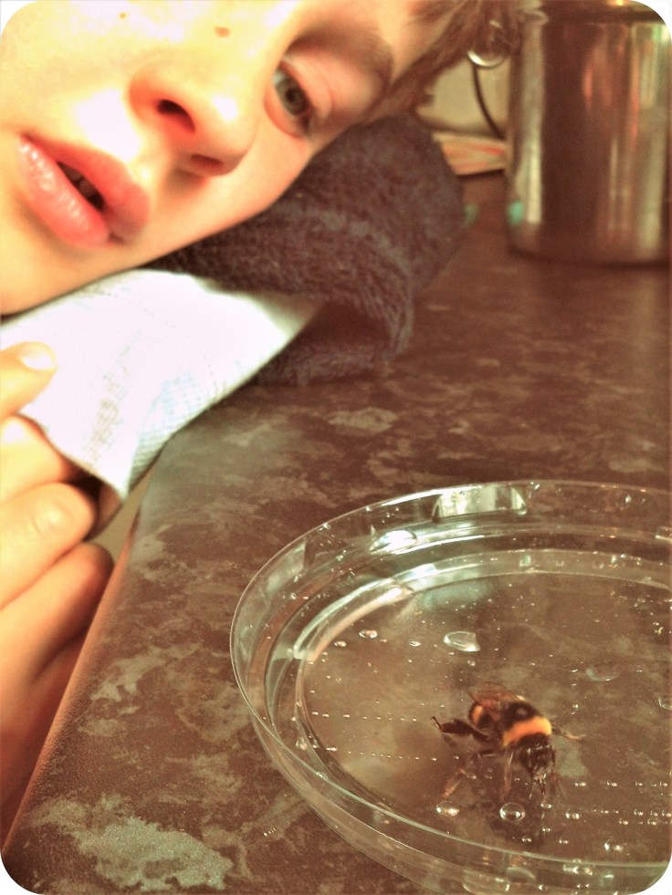When you come across a discouraged exhausted Bombus terrestris (buff tailed bumblebee) here is what you should do.