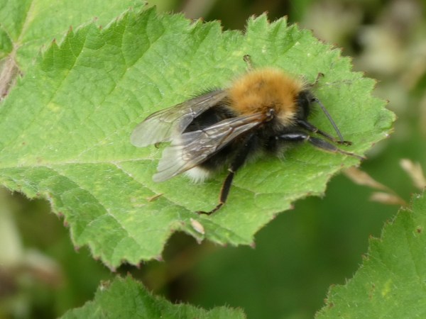 There are buff-tailed bumblebees working in the park. A walk around the hedges of Sleeper Field on a sunny morning will reveal dozens working in the blackberry blossoms and the hogweed. There is always at least one large and thriving nest somewhere in the southern part of the park.