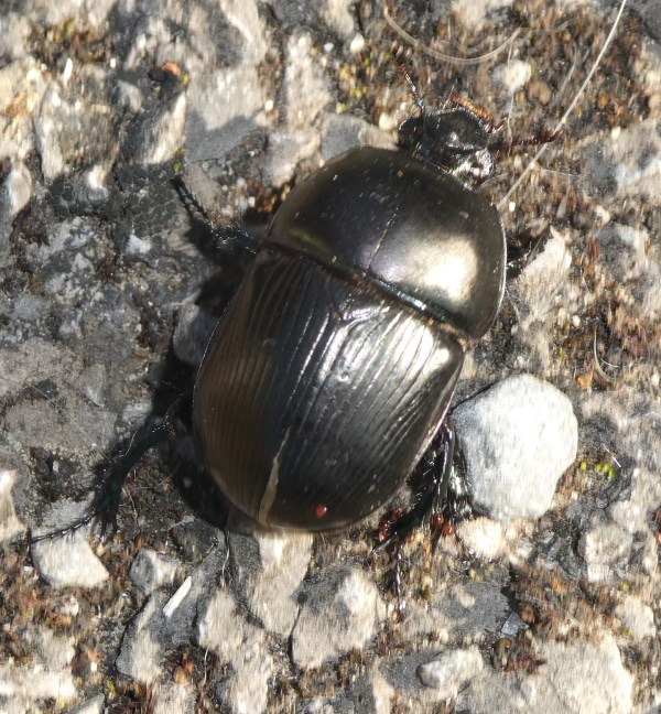 This is a Dor Beetle and I am almost certain it is a Common Dumbledore Beetle – Geotrupes spiniger. This is the first time it has been identified in the reserve and I have added it to our lists.