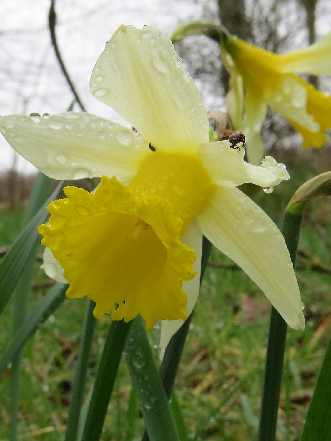 Battered by the storms and drenched in rain, the one thousand native daffodils we planted around Village Green in 2017 are flying the flag.