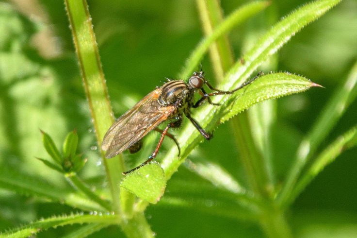A nursery web spider (Pisaura mirabilis) photographed in the park by DKG on a dewy morning.