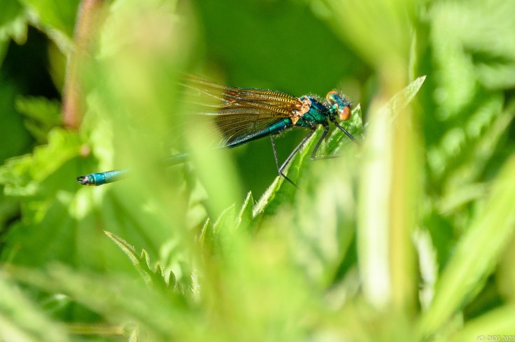 Click here for a gallery of pcturesA beautiful demoiselle (Calopterix virgo), photographed in the park this summer by DKG.