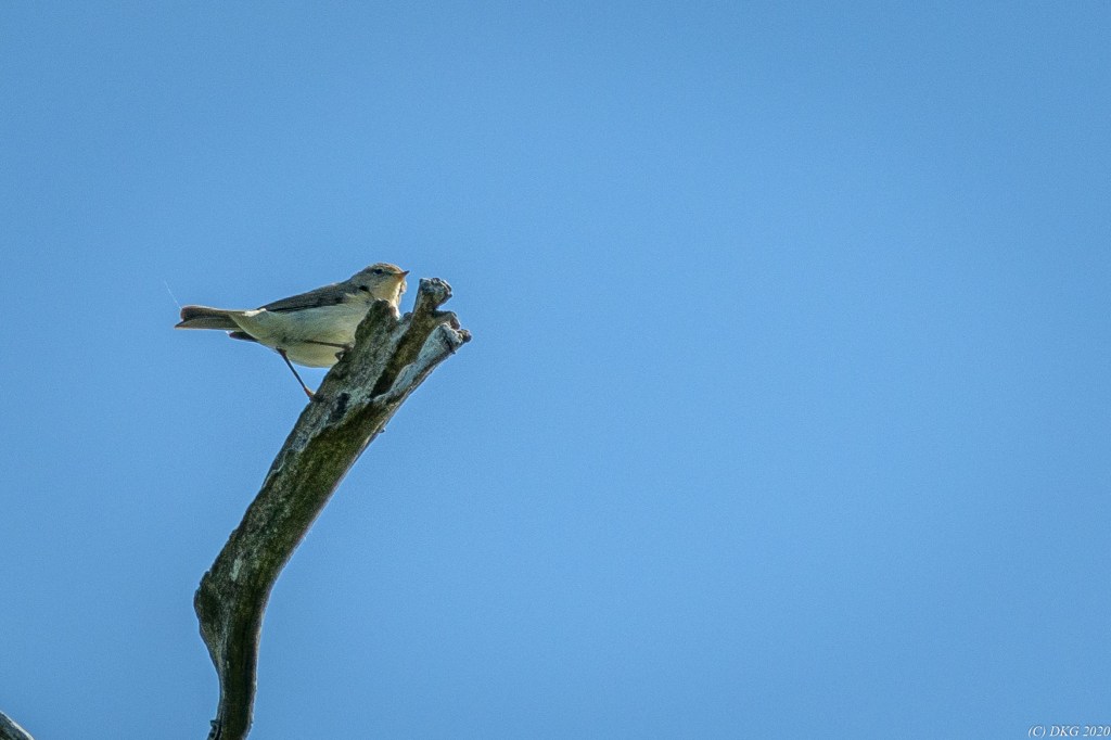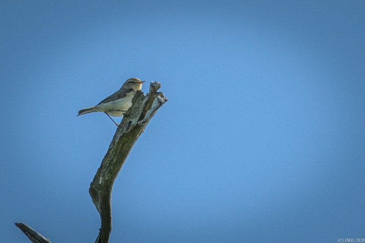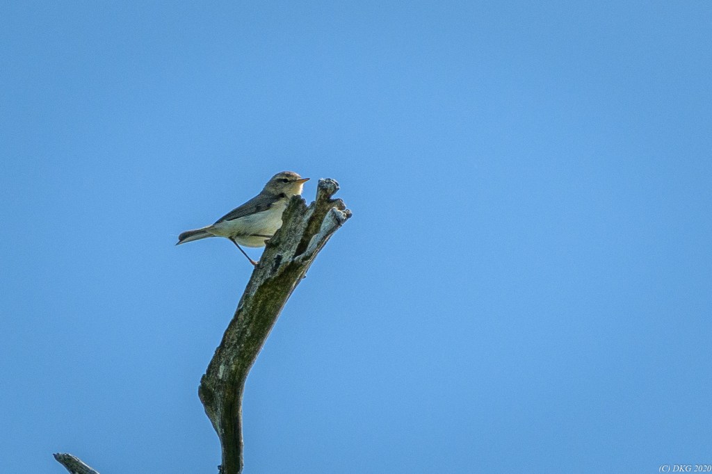A willow warbler (Phylloscopus trochilus) seen and photographed by DKG yesterday morning.