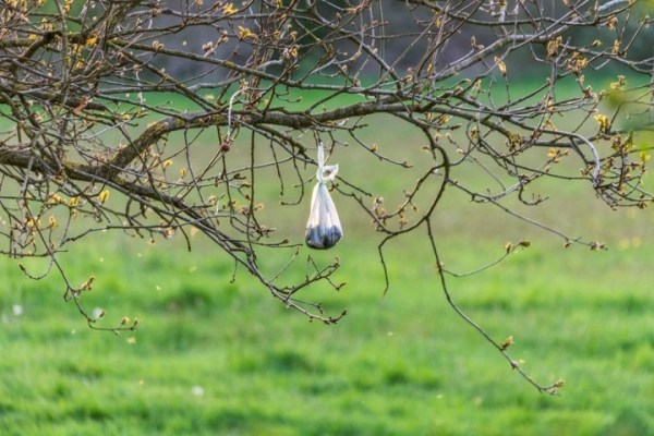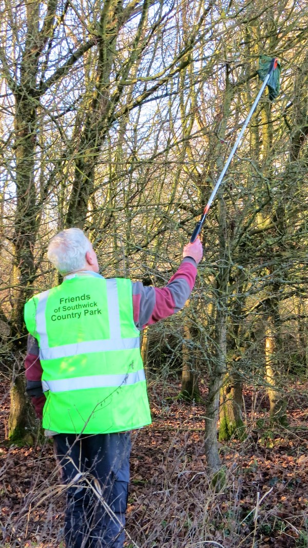 Occasionally, while we are clearing the undergrowth in the reserve’s copses, we find the secret places, among the ivy and blackthorn, where somebody has hidden their plastic bags full of dog poop.