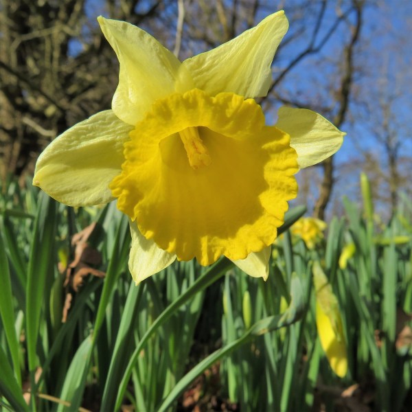 Over the years the Friends have planted at least a couple of thousand native daffodil bulbs (Narcissus pseudonarcissus) around the edges of the reserve’s woodland. Back breaking work, rewarded at this time of year with the first golden flowers.