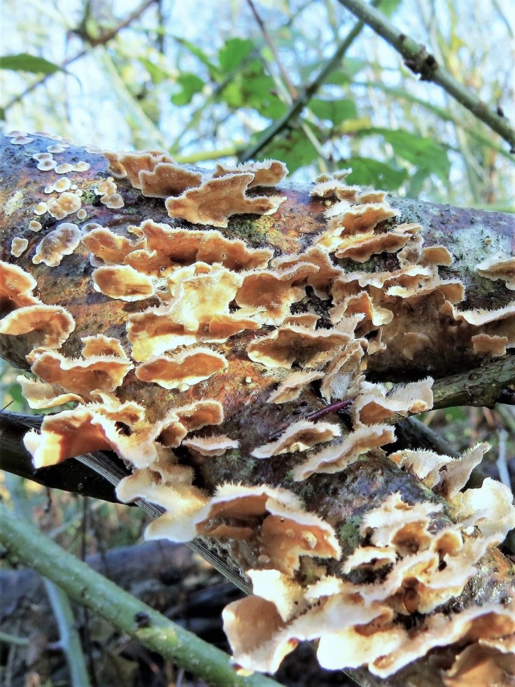 . . . trametes hirsuta growing on dead oak in the wood between Kestrel Field and Lambrok Meadow.