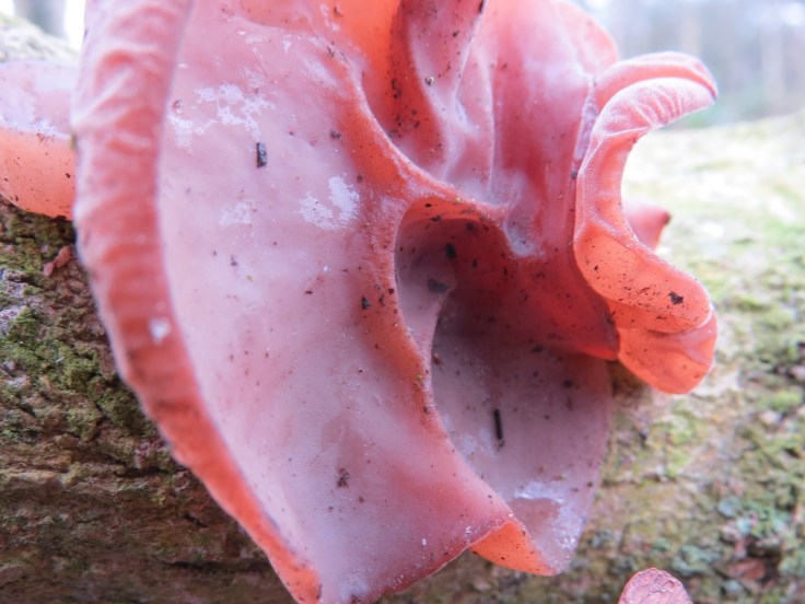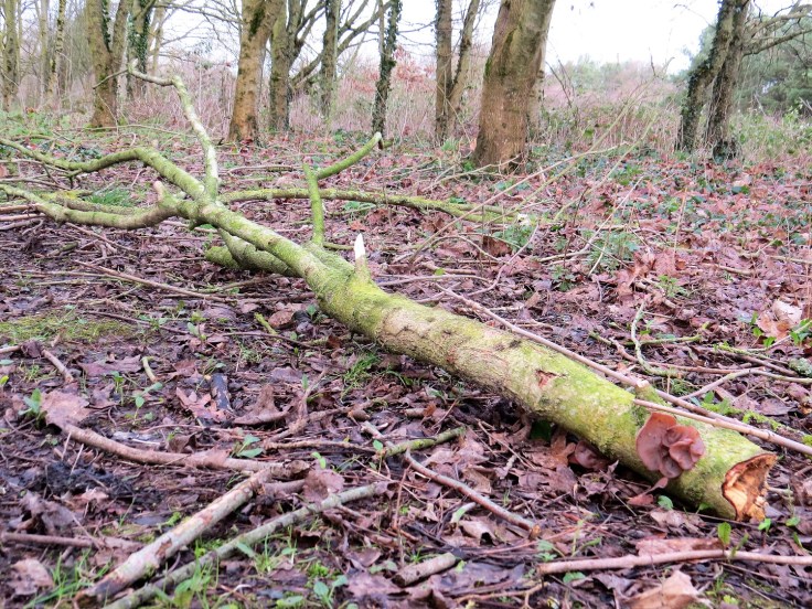 Wood ear (Auricular auricula-judae) found growing on a branch brought down in one of the copses by Storm Ciara.