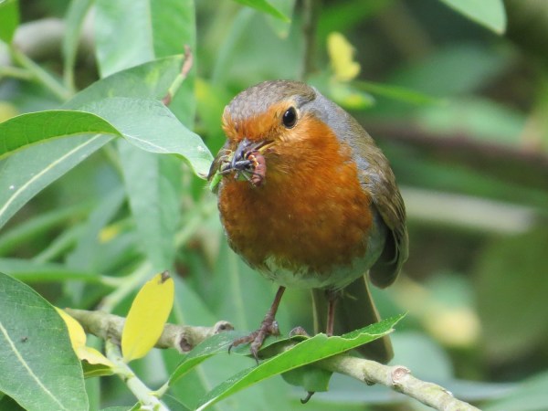 A robin in the willows by Fiveways; it has a mouthful of invertebrates for a nearby nest of hatchlings. It doesn’t want to reveal its nest site so is waiting quietly for the photographer to go away but in waiting, is providing an excellent view of its catch.