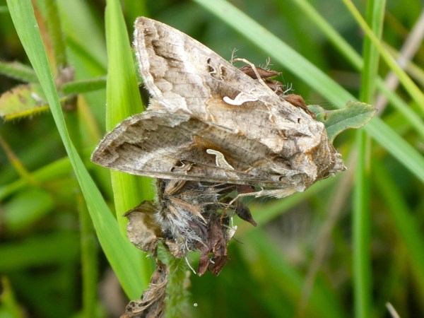Continue readingA day flying moth, beautifully camouflaged on a wildflower seedhead, found and photographed yesterday by Clive Knight, and identified by Ian Bushell: a Silver Y (Autographa gamma).