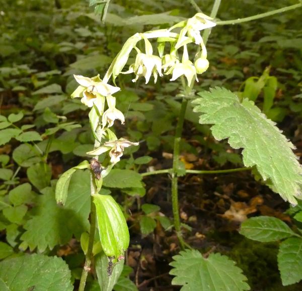Ian knows where the broad leaved helleborines (Epipactis helleborine) grow in our woods and has sent us pictures. In the reserve, our helleborines grow in deep shade, which makes them hard to find and difficult to photograph.