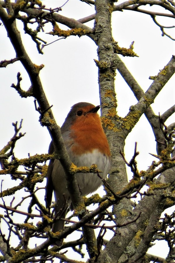 The robin is one of the few birds in the UK that sing in the winter as well as the summer. The purpose of the song is territorial; robins winter here and defend their territories all year round.