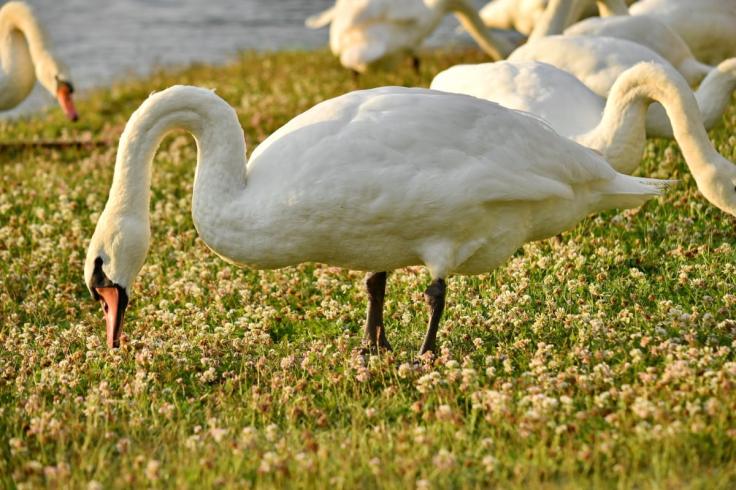 Mute swans (Cygnus olor) come to the park to graze, not to swim or raise chicks. They break their long journey to some faraway lake or river, to rest and eat in the park’s green fields. We are a swan service station.